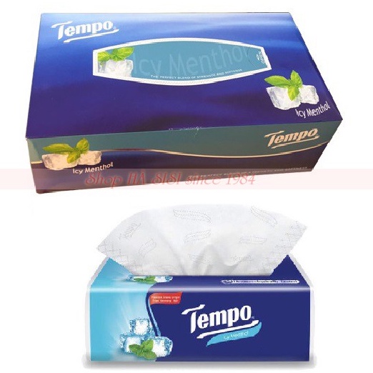 Hộp khăn giấy không mùi TEMPO Box Facial Tissues ICy Menthol (90 Tờ)Thương hiệu: TEMPO