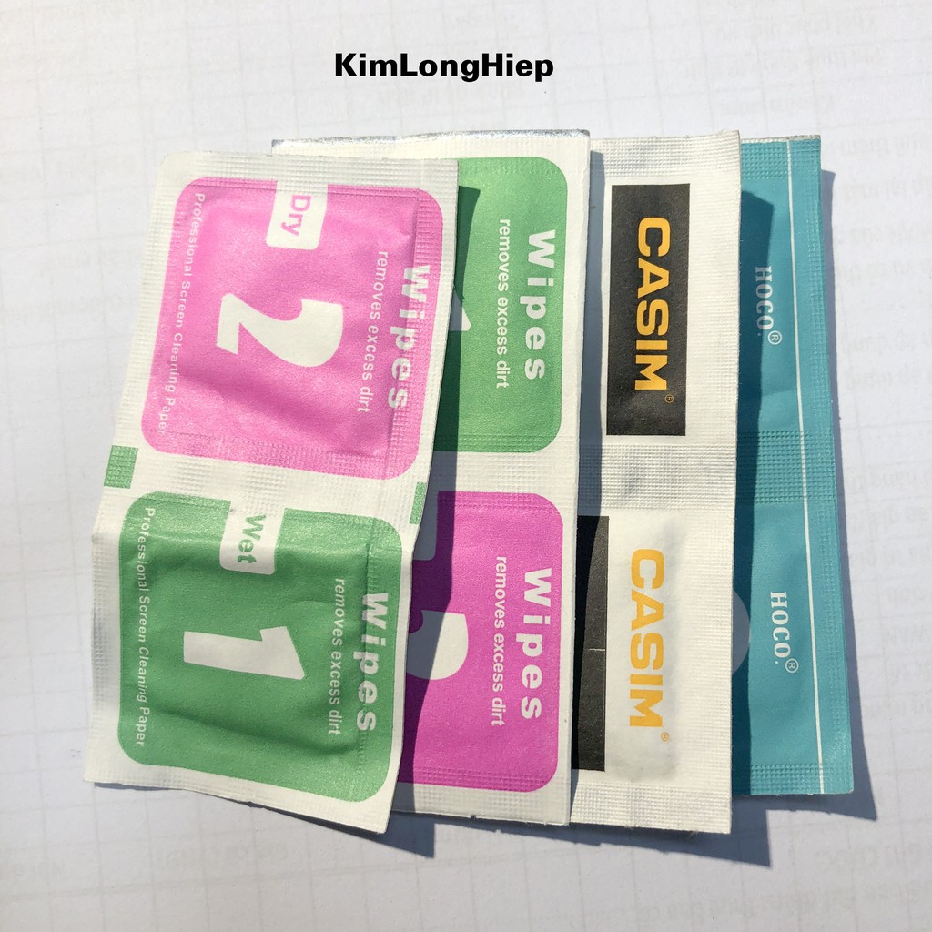 Khăn giấy khô và ướt lau vệ sinh điện thoại để dán cường lực