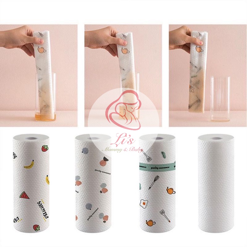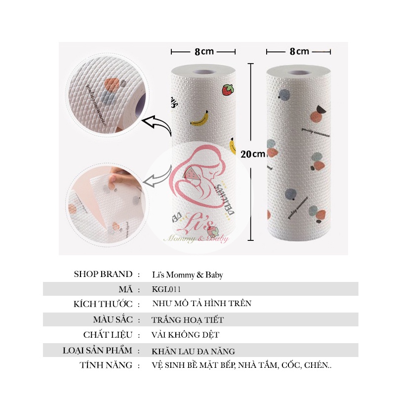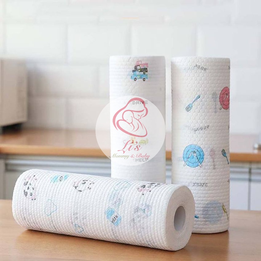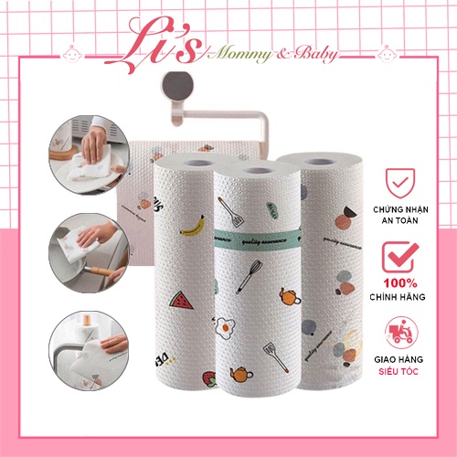 Khăn giấy lau bếp đa năng cuộn 40 tờ siêu thấm 2 mặt dày dặn có thể tái sử dụng nhiều lần Mã KGL011-Màu sắc :trắng + họa tiết