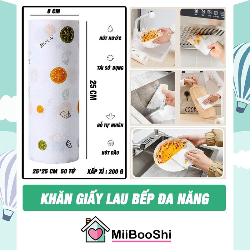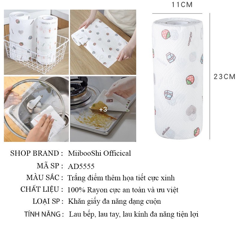 Khăn giấy lau bếp dùng 1 lần khăn giấy khô lau tay lau kính siêu thấm đa năng tiện lợi dạng cuộn MiibooShi AD5555