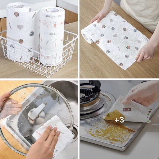 Khăn giấy lau bếp dùng 1 lần khăn giấy khô lau tay lau kính siêu thấm đa năng tiện lợi dạng cuộn MiibooShi AD5555Ai mê làm bếp đố từ chối đc giấy này nha