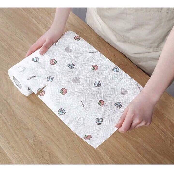 - Khăn giấy lau bếp đa năng thiết kế 1 cuộn có 50 tờ, nhiều họa tiết đẹp mắt để bạn chọn lựa cho phù hợp sở thích hoặc không gian decor nhà bếp của bạn.