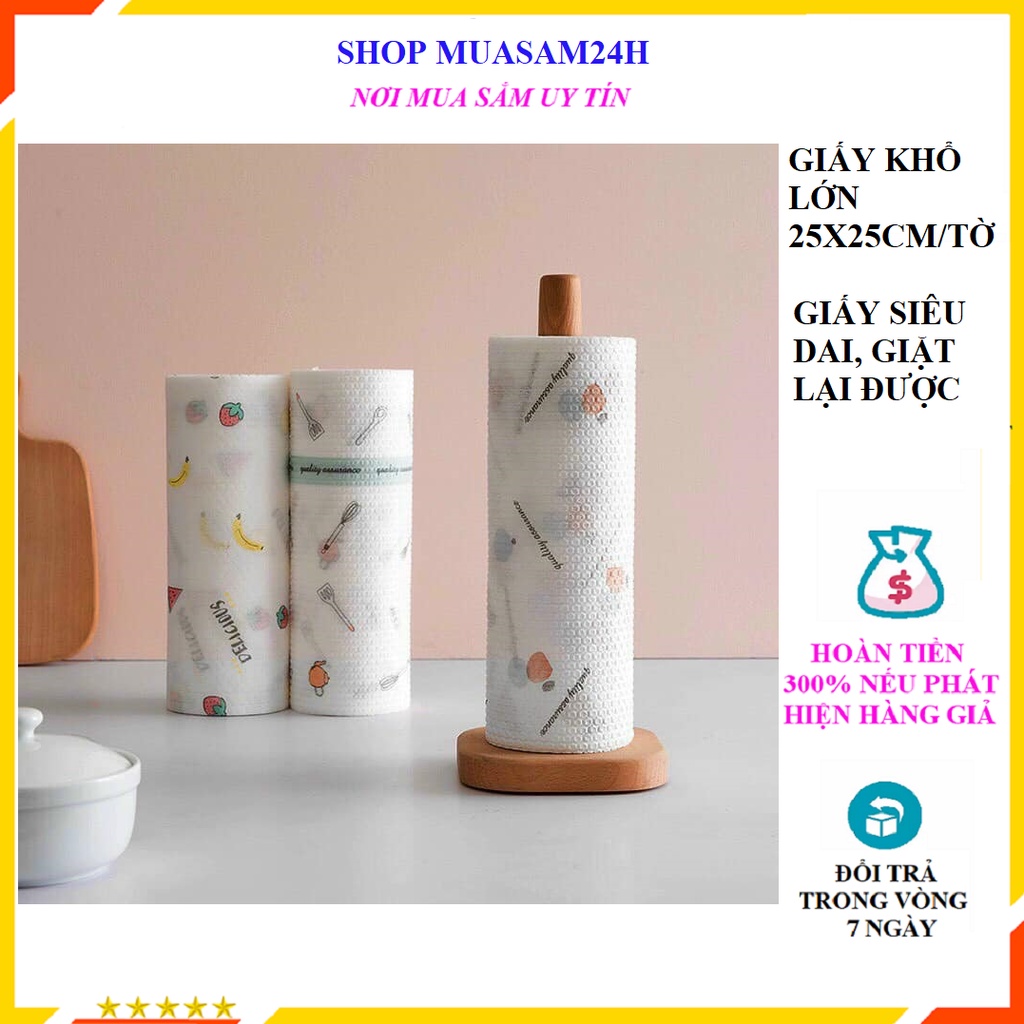 - KHĂN GIẤY LAU BẾP Shop cung cấp có kích thước vượt trội 25x25cm/tờ, 1 cuộn gồm 50 tờ khăn giấy chất liệu bằng vải không dệt có thể giặt đi và tái sử dụng nhiều lần.- KHĂN LAU ĐA NĂNG dùng để lau bàn, khăn lau bếp, khăn lay tay và lau dọn nhà cửa. Khăn giấy thấm hút rất tốt nên lau khô chén bát rất tiện lợi.