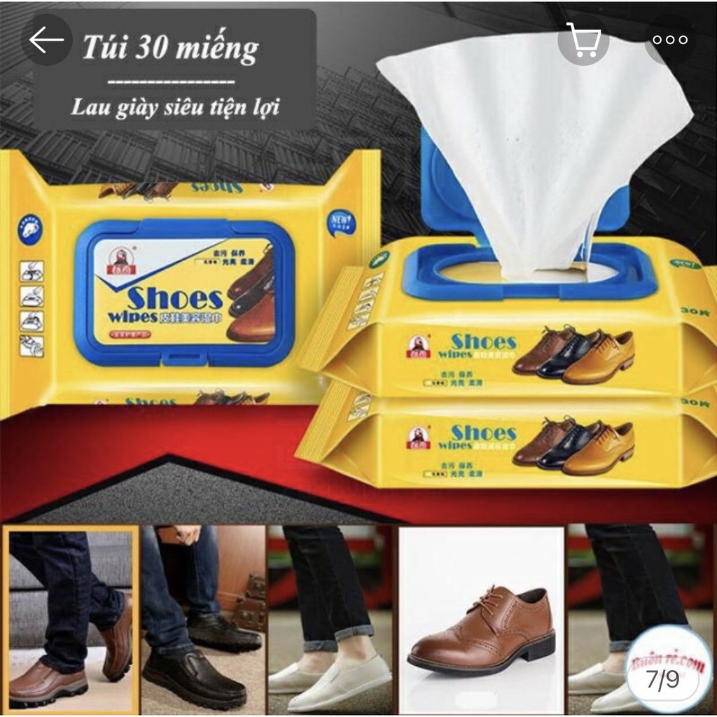 Gói 30 khăn lau giày thể thao, giày da, giày trắng, đế giày.- khăn lau giày Làm sạch diệt khuẩn mà không có bất kỳ hóa chất khắc nghiệt có thể gây hại cho vải hoặc da
