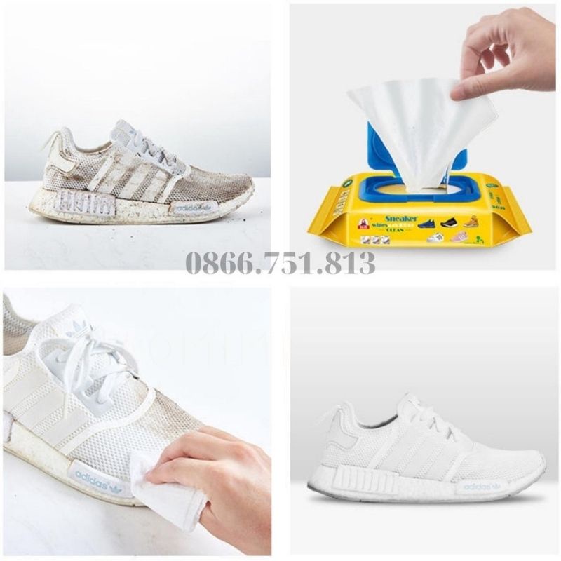 Khăn giấy lau giày sneaker siêu sạch hộp 30 tờ không hoá chất làm hại da tay vải giày XIAOMIMI SF1562Những ngày trời nồm, quần áo giặt còn phơi mãi chưa khô, huống chi là giặt giày. Nhưng nếu có miếng giấy ướt này trong tay, bạn sẽ có ngay đôi giày tinh tươm để diện ra đường chỉ sau vài phút. Khăn giấy lau giày Shoes Sneaker Thần Thánh sản phẩm vệ sinh giày gọn nhẹ, tiện lợi và tiết kiệm thời gian hơn. Sản phẩm thích hợp sử dụng cho các loại giày trắng, giày thể thao, giày vải dệt, giày mặt lưới; không thích hợp với các chất liệu da lộn, vải nhuộm và vải nguyên chất