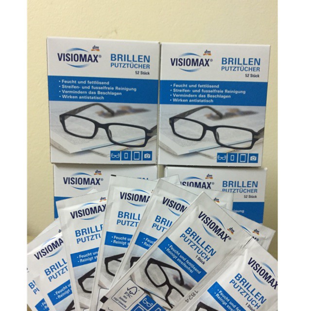 -Khăn lau Visiomax loại bỏ bụi bẩn và làm sạch mắt kính Là loại crepe mềm, ướt, làm sạch triệt để và nhẹ nhàng.