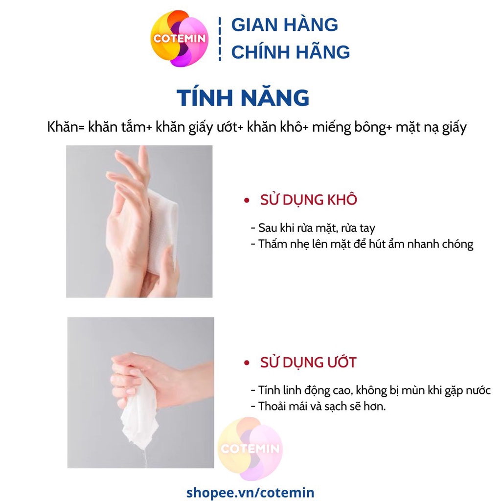 Giới thiệu Khăn giấy Lau Mặt Dùng 1 Lần Lau Khô Lau Ướt Tẩy Trang Tiện lợi Cuộn 40 Miếng COTEMIN
