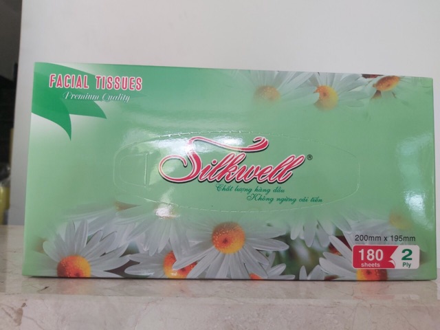 Khăn giấy lụa được làm nguyên liệu là 100% bột nguyên sinh, giấy mịn, dai, phù hợp với các nhà hàng, khách sạn, gia đình, văn phòng cho khách hàng cảm thấy thoải mái khi sử dụng.Khăn giấy lụa hộp 180T silkwell giá 12.000/1 hộp