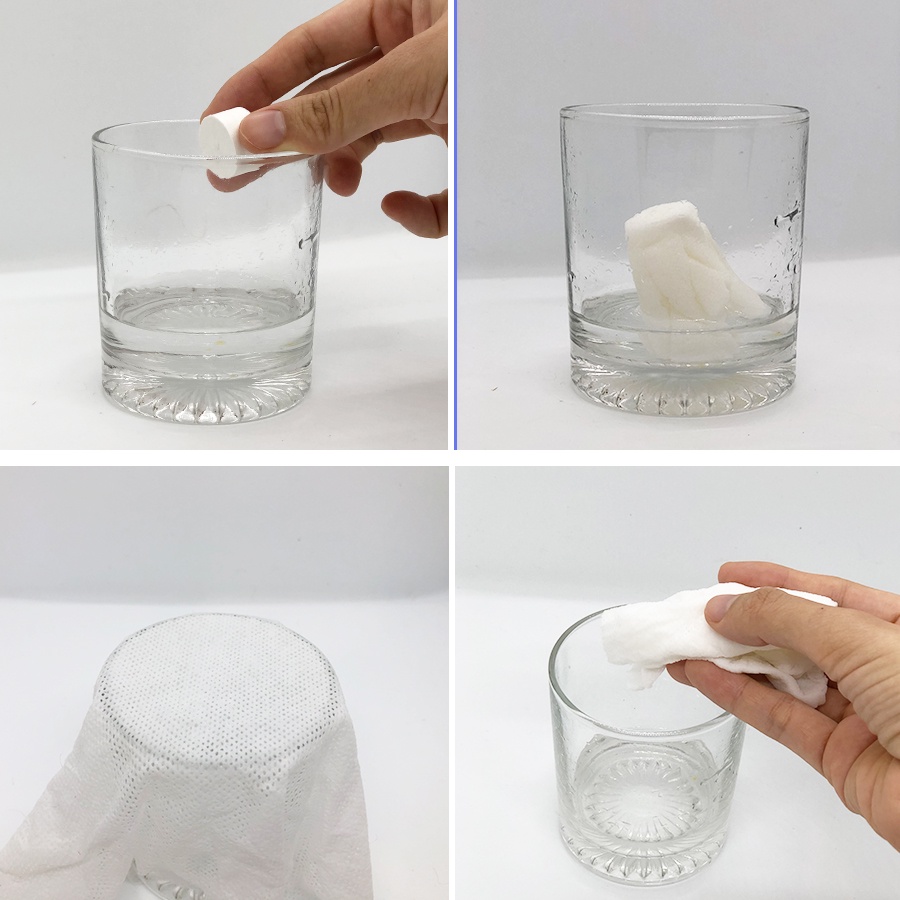 ✔ Khăn giấy nén dạng viên kẹo Likado có thể dùng để lau kính và các vật dụng trong nhà rất tiện lợi