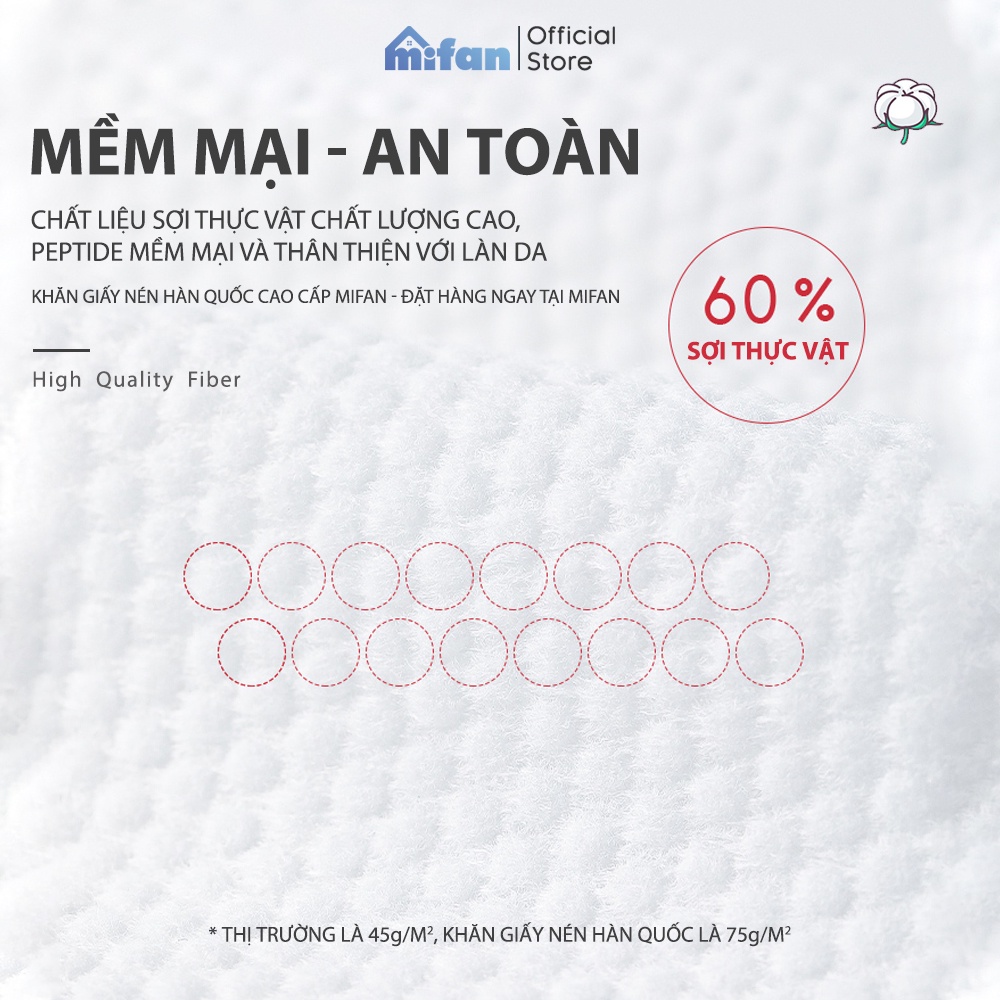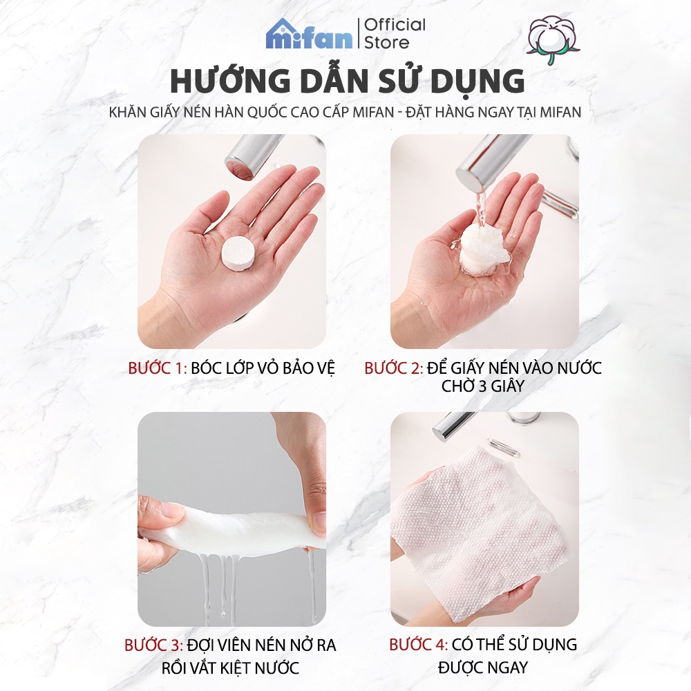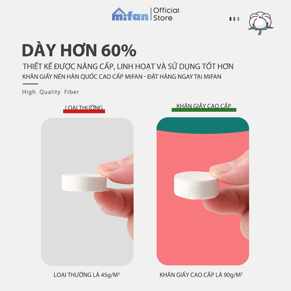 Giới thiệu Khăn Giấy Nén Hàn Quốc Cao Cấp MIFAN - Gói 20 Viên - Khăn 24x30cm - Loại Dày 2 Lớp - Mang Đi Du Lịch, Công Tác Tiện Lợi
