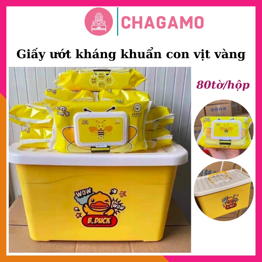 Khăn giấy ướt kháng khuẩn con vịt vàng loại 80 tờ 1 Hộp - Combo 10 hộp - Hàng nội địa trung cao cấp, giấy ướt B.Duck