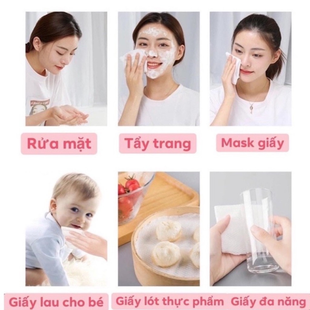 Khăn giấy đa năng, khăn lau đa năng: Nhiều công dụng như dùng làm khăn lau tay, khăn lau mặt,khăn mặt, dùng làm tã em bé,...