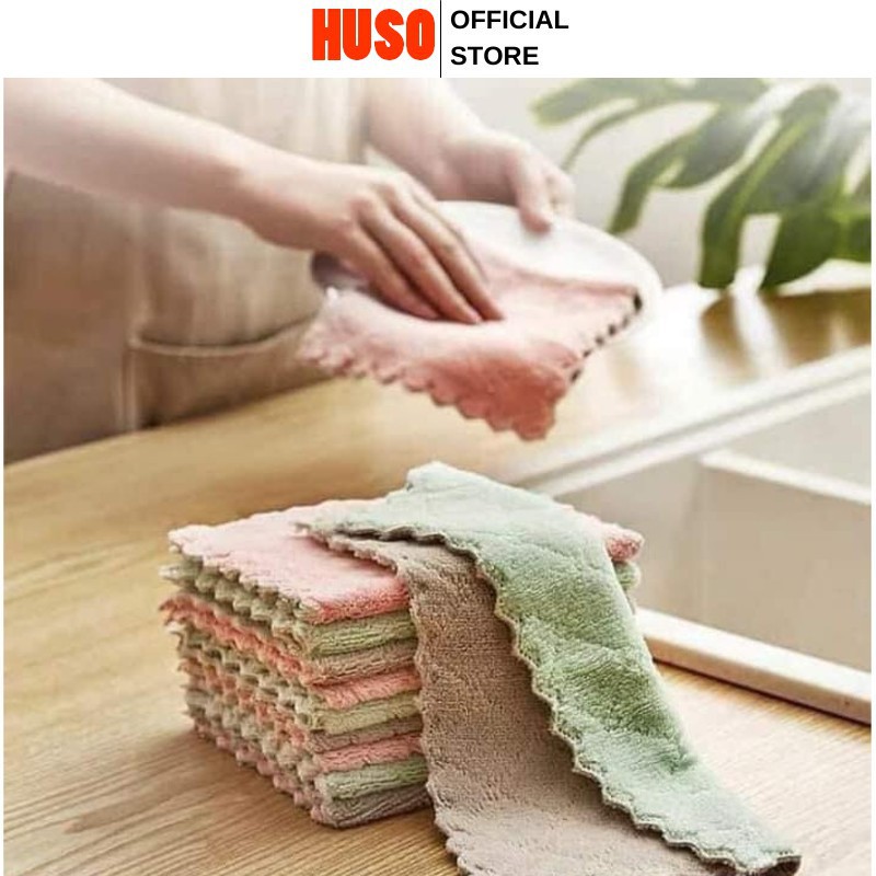 Khăn Lau 2 màu Đa Năng - Khăn lau Siêu Thấm Nước - HUSO