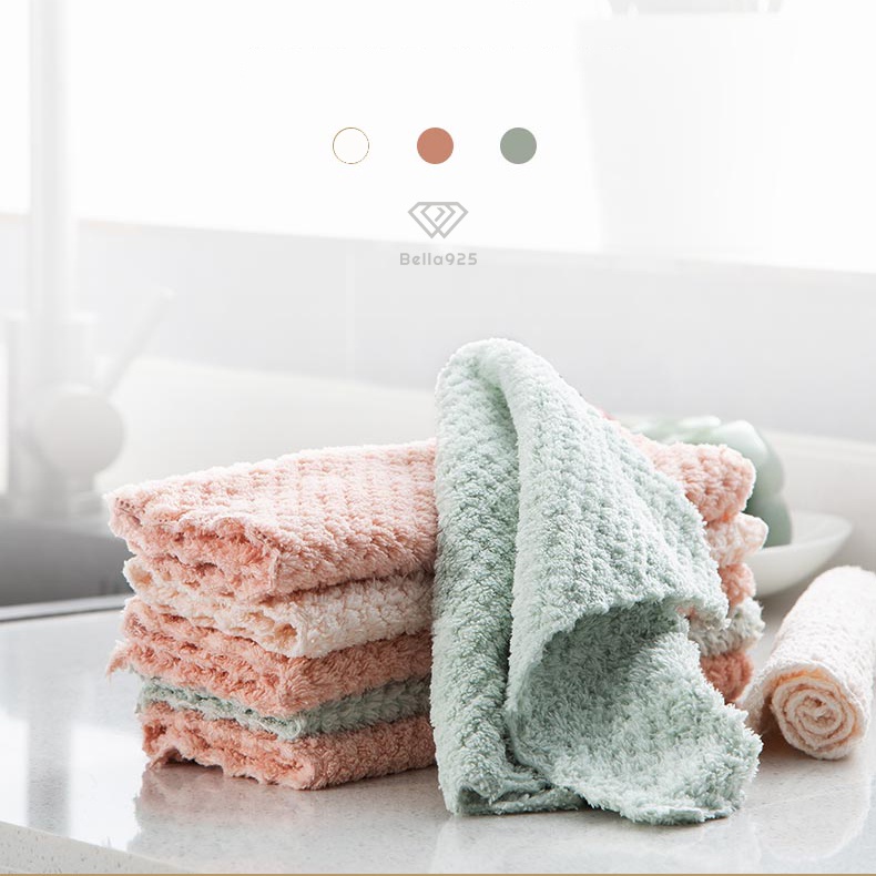 Nhà cửa & Đời sống > Dụng cụ chăm sóc nhà cửa > Khăn vệ sinh || Khăn lau bàn ghế chén dĩa Bella925 sợi vải mịn siêu thấm nước kích thước 25x25Còn hàng