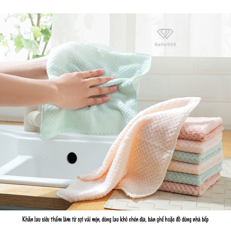 Khăn lau bàn ghế chén dĩa Bella925 sợi vải mịn siêu thấm nước kích thước 25x25