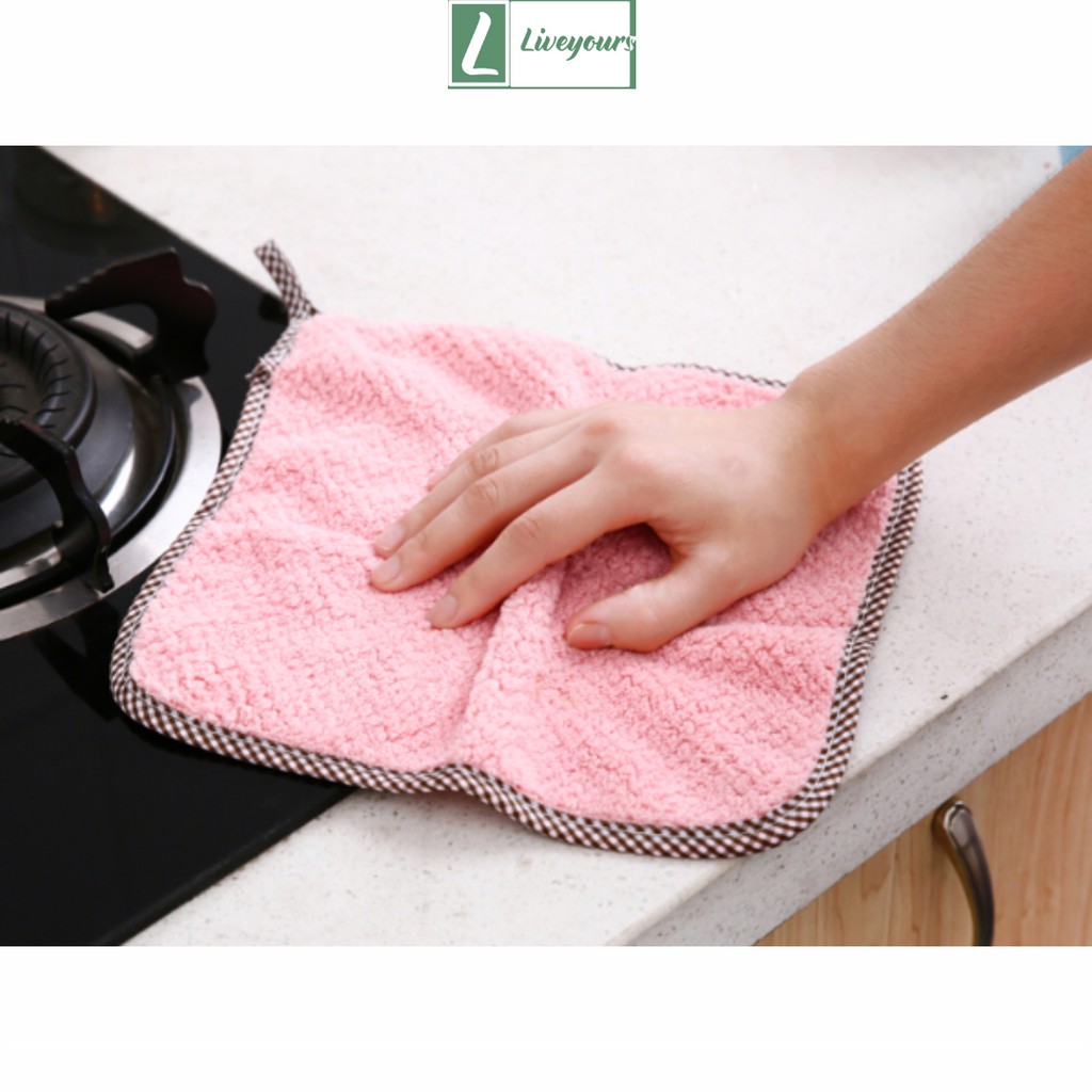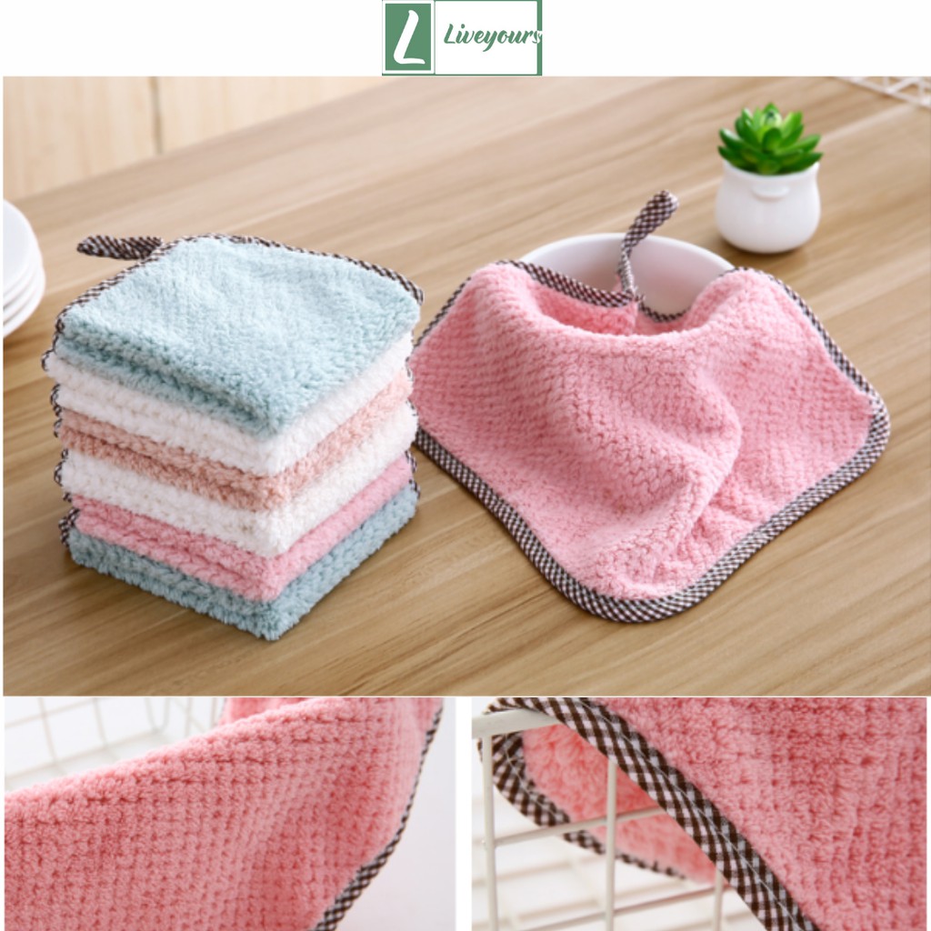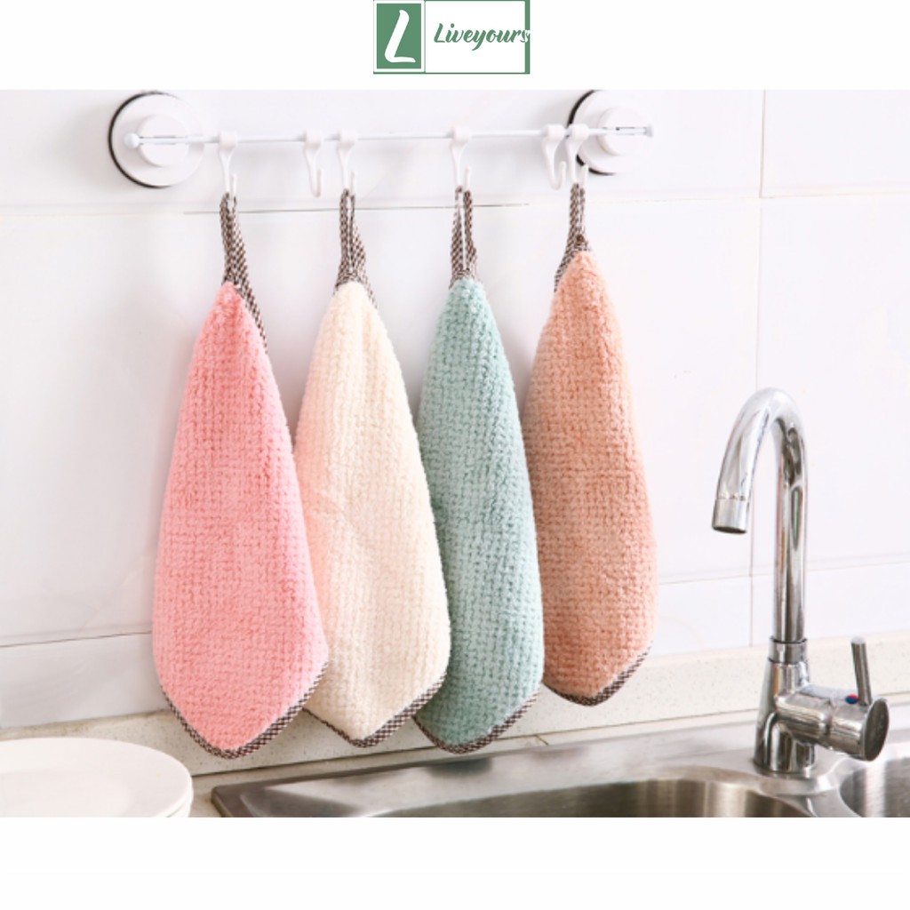 Khăn Lau Bát Đĩa - Khăn Lau Tay Treo Tường Bằng Vải Lông Cừu San Hô Thấm Hút Tốt Không Bị Mốc Cho Nhà Bếp