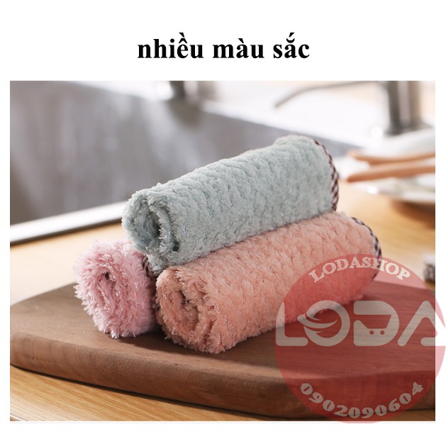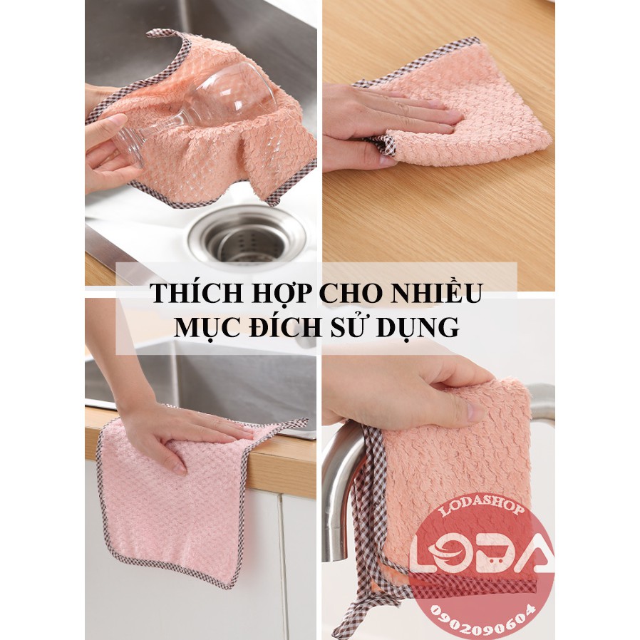 Giới thiệu Khăn lau bát nhung lông cừu san hô 25x25 LODASHOP Có móc treo siêu thấm hút, mảng bám bẩn dễ trôi,