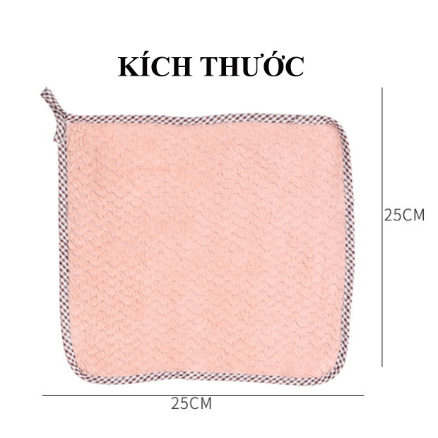 Khăn lau bát nhung lông cừu san hô 25x25 LODASHOP Có móc treo siêu thấm hút, mảng bám bẩn dễ trôi,