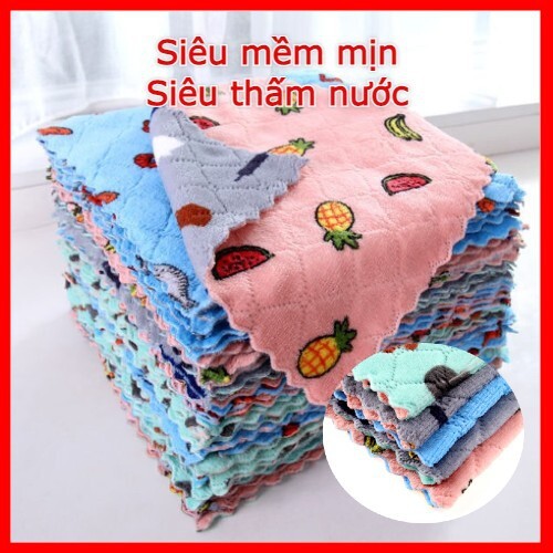 Giới thiệu Khăn lau bếp đa năng 2 mặt họa tiết vải cotton dày siêu thấm nước siêu mềm hình vuông 25x25