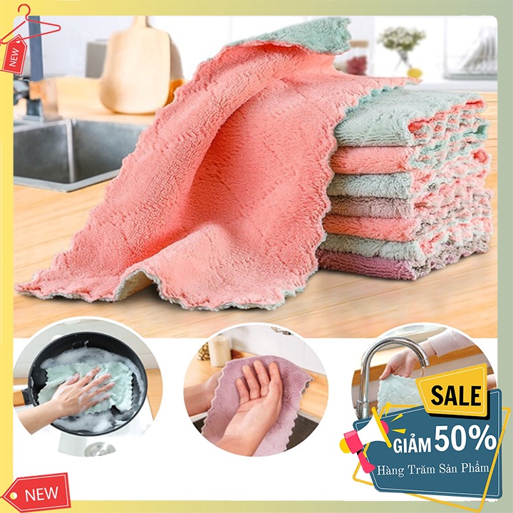 Khăn lau bếp đa năng 2 mặt siêu thấm kháng khuẩn lau bếp, bát đĩa Loại 1