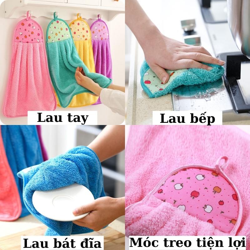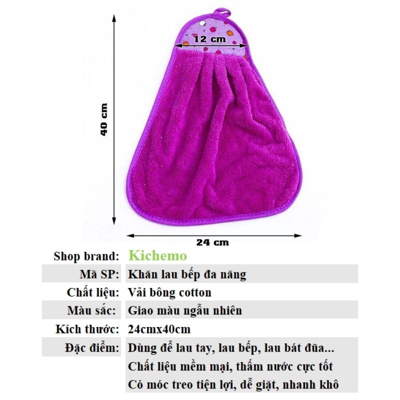Giới thiệu Khăn lau bếp đa năng có móc treo lau tay bát đĩa chất liệu vải bông mềm và thấm nước - Giao màu ngẫu nhiên