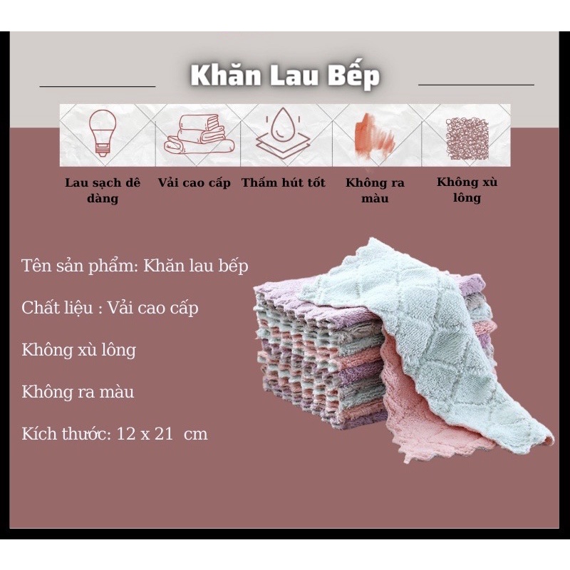 [SET 10 CHIẾC] Khăn Lau Bếp Đa Năng Mềm Mại Thấm Hút Tốt, Khăn LauĐa Năng Nhà Bếp 2 Mặt Chống Dính Dầu Mỡ Nhanh Khô 5.0❗ Thông tin chi tiết sản phẩm Khăn lau bếp đa năng 2 mặt mềm mại thấm hút tốt, khăn lau tay nhà bếp chống dính dầu mỡ nhanh khô:
