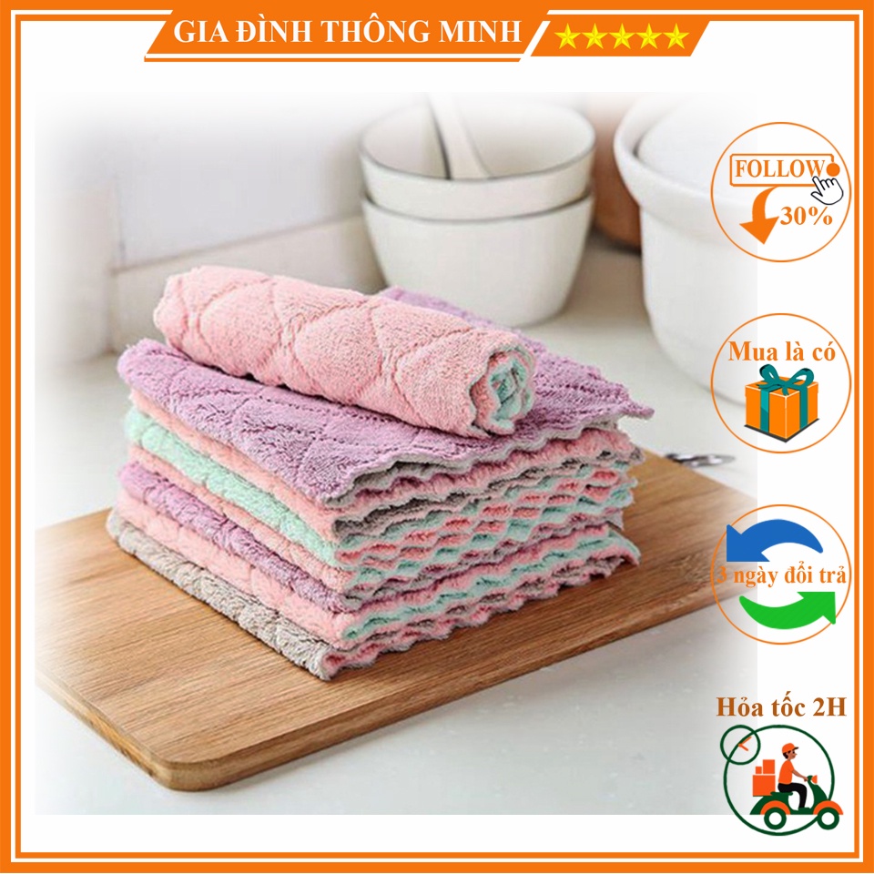 (𝗚𝗶𝗮́ 𝗦𝗶̉) Khăn lau bếp đa năng mềm mại thấm hút tốt, khăn lau đa năng nhà bếp 2 mặt chống dính dầu mỡ nhanh khô