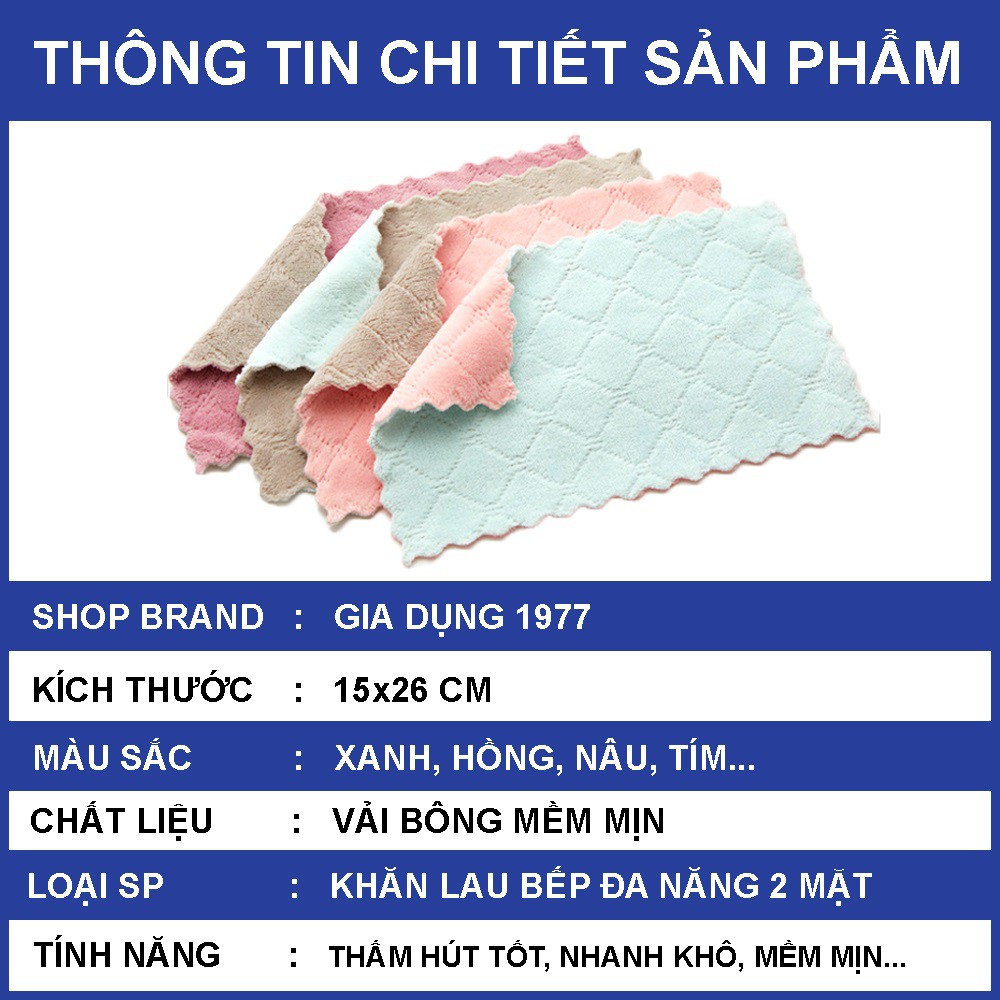 Thông tin chi tiết sản phẩm Khăn lau bếp đa năng 2 mặt mềm mại thấm hút tốt, khăn lau tay nhà bếp chống dính dầu mỡ nhanh khô: