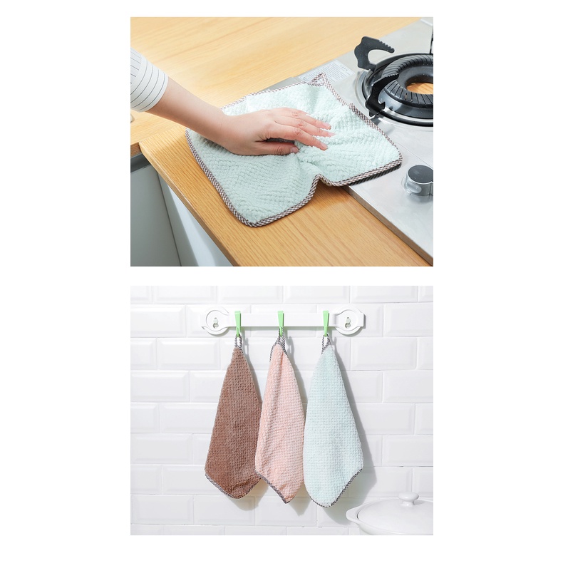 - Khăn lau bếp đa năng được thiết kế bao viền có phần treo, có thể treo ở nhà tắm, nhà bếp