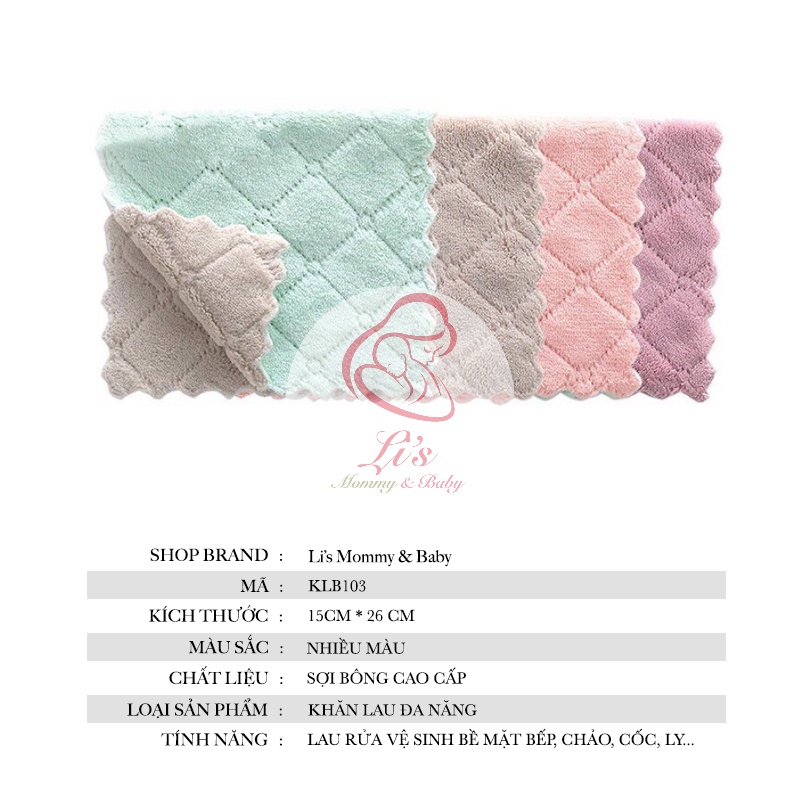 Khăn lau bếp đa năng siêu thấm 2 mặt dày dặn có thể tái sử dụng nhiều lần combo Mã KLB103Kích thước: 15*26cm