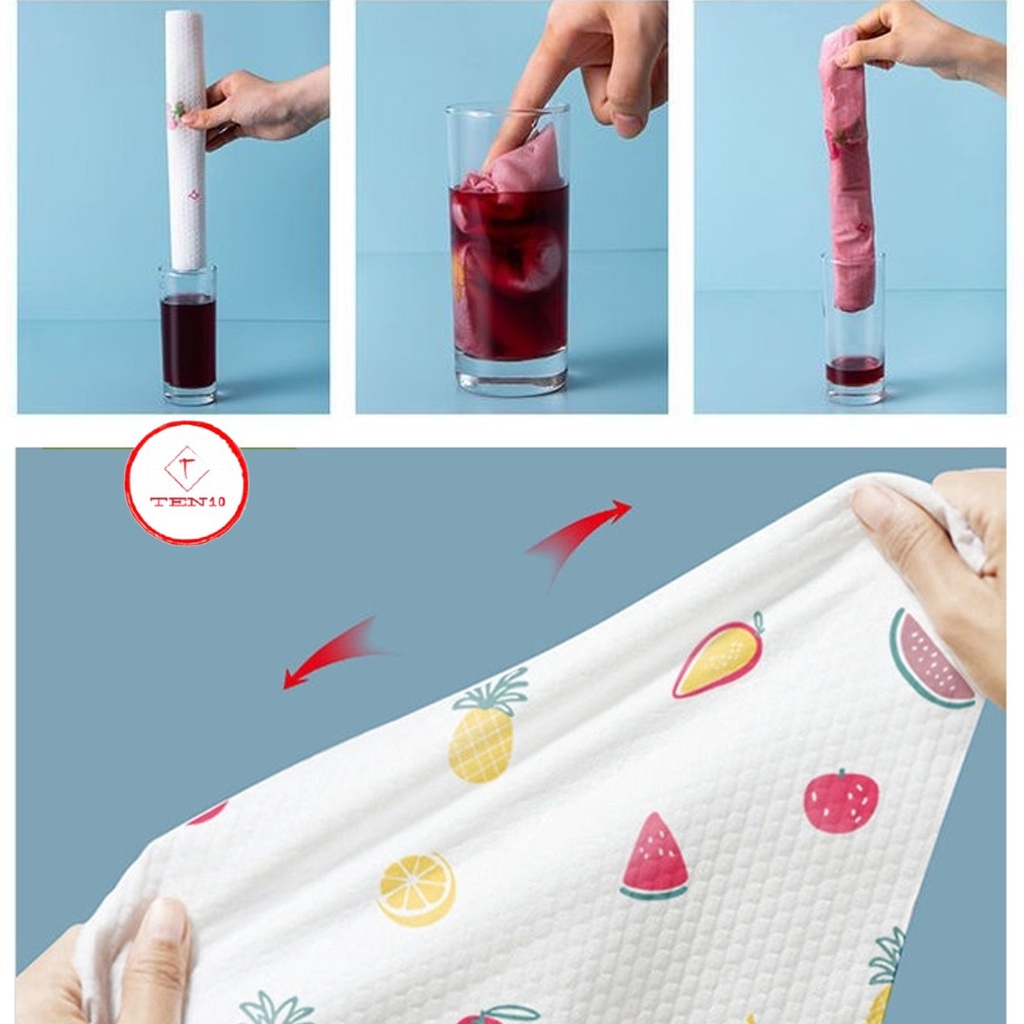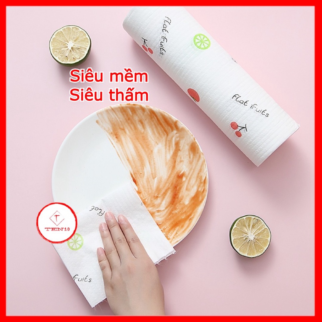 Khăn lau bếp dày dặn đa năng Cuộn 50 tờ dùng nhiều lần chất liệu cotton mềm mại siêu thấm nước