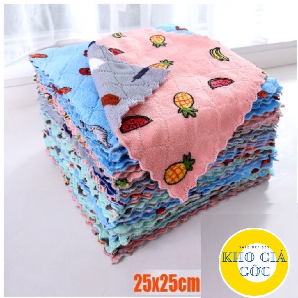 Khăn lau bếp hình họa tiết siêu mềm siêu thấm hút lau bếp, lau chén đĩa, lau bàn ghế tiện lợi Sale