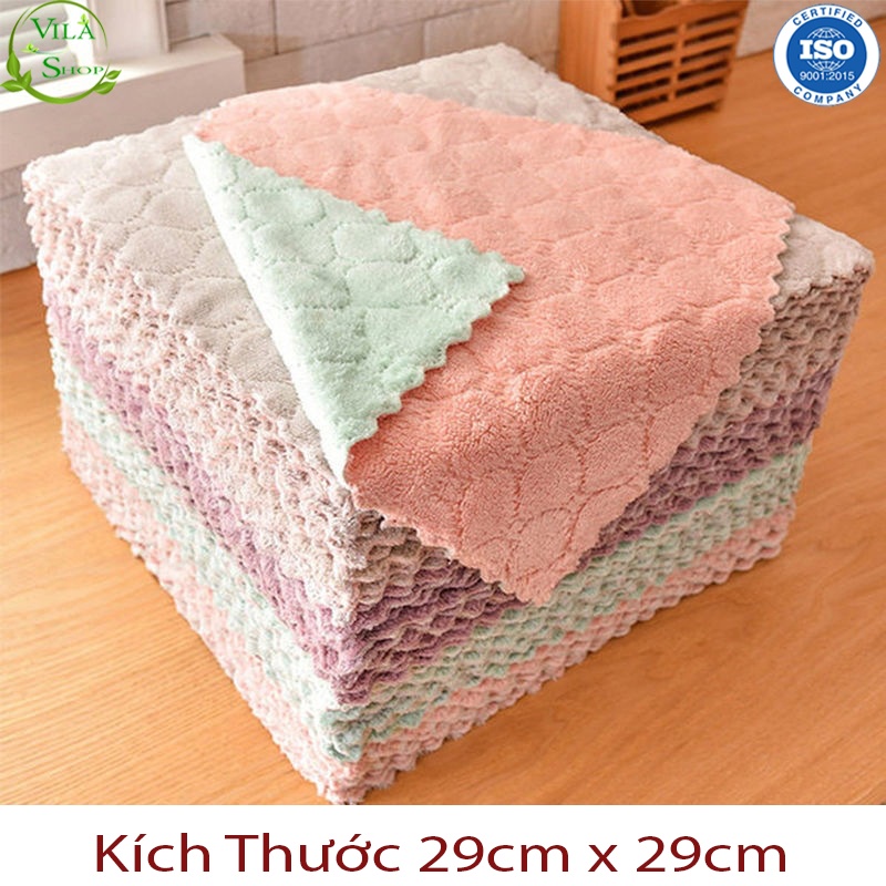 Khăn Lau Bếp, Khăn Lau Đa Năng 2 Mặt Siêu Thấm Hút, Chất Liệu Khăn Mềm Mịn Làm Sạch Hiệu Quả Kích Thước 29cm x 29 cm