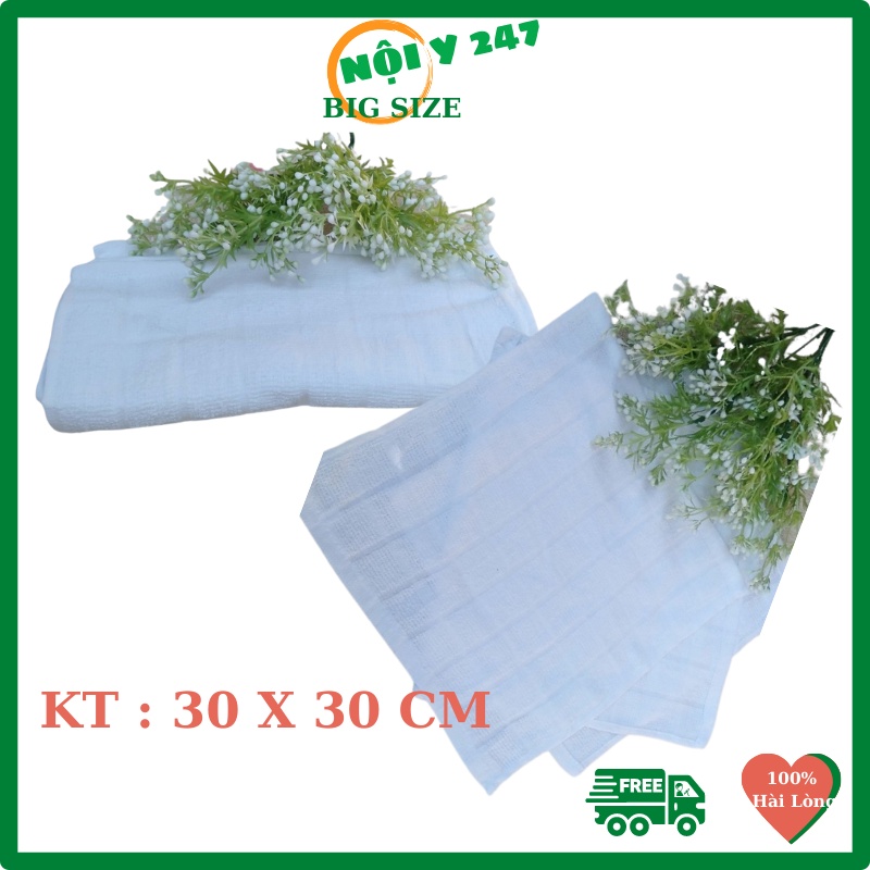 Kích thước 30x30cm. Khăn dùng để lau bàn ghế, bát đũa, lau bếp, đồ dùng...