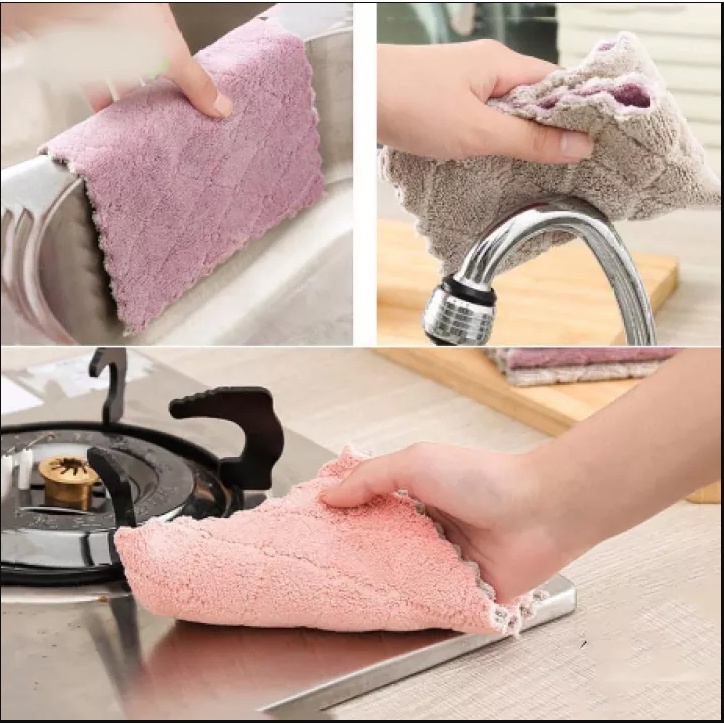 Có nhiều công dụng, gian bếp chỉ cần loại khăn này là đủ không cần thêm bất gì thứ gì khác:lau tay, làm miếng rửa bát, lau bát đĩa, lau cốc chén, lau bếp, lau kệ bếp, lau mặt bàn, lau cửa kính...