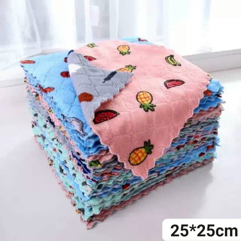Nhà cửa & Đời sống > Dụng cụ chăm sóc nhà cửa > Khăn vệ sinh || Khăn lau chén dĩa vải san hô in họa tiết siêu iu 25x25cmCòn hàng
