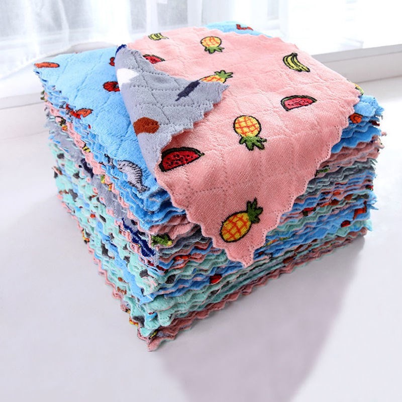 Nhà cửa & Đời sống > Dụng cụ chăm sóc nhà cửa > Khăn vệ sinh || Khăn lau chùi chén đĩa bát bàn ghế bếp nhà cửa chất liệu nỉ có hình họa tiết hoa quả bắt mắt tiện lợi 25x25cmCòn hàng