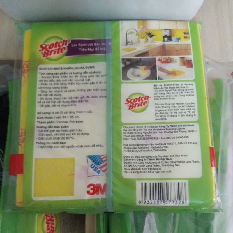 Gói 3+1 Khăn Lau Đa Dụng Scotch-Brite 3M - 34x35cm – Lau Sạch Vết Bẩn Dầu Mỡ, Trên Mọi Bề Mặt – Hàng Chính Hãng – HIBUCENTERTính năng sản phẩm và hướng dẫn sử dụng: