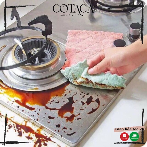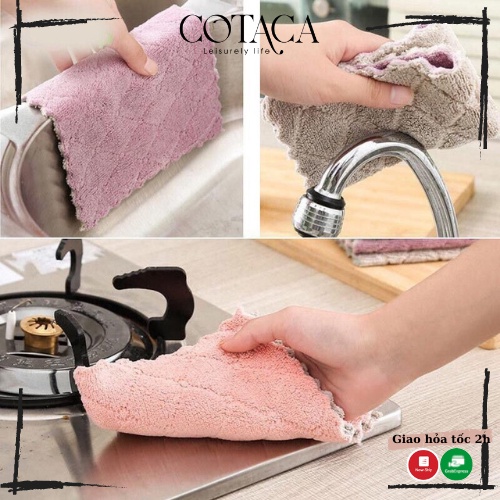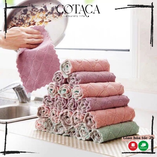 Nhà cửa & Đời sống > Dụng cụ chăm sóc nhà cửa > Khăn vệ sinh || Khăn lau đa năng bếp, bát đĩa, cốc chén thấm nước chống dính dầu mỡ hai mặt loại to 16x27cmCòn hàng