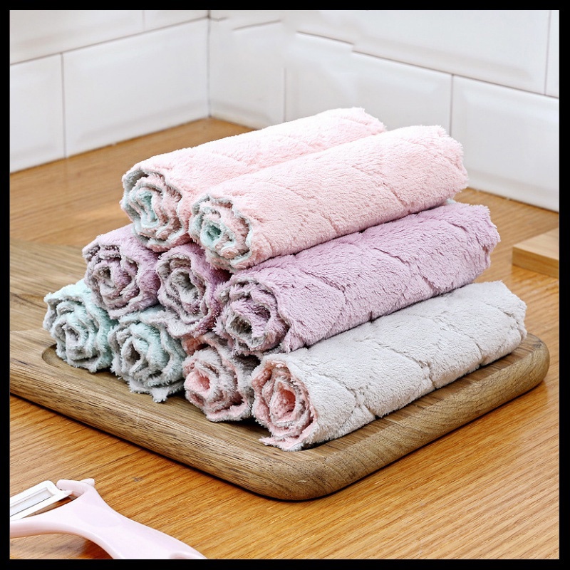 Khăn lau đa năng bếp, bát đĩa, cốc chén thấm nước chống dính dầu mỡ hai mặt