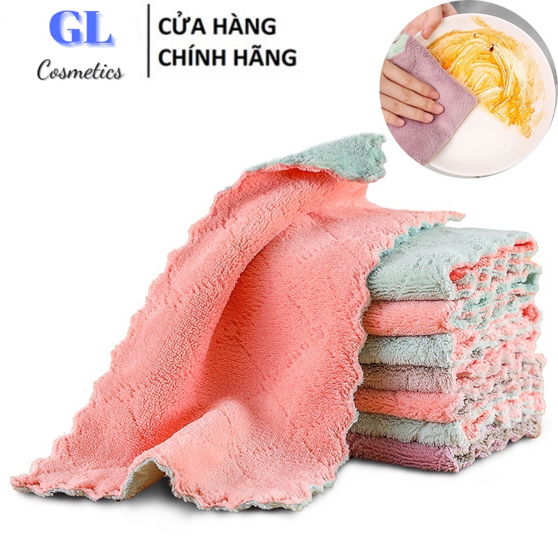 Khăn lau đa năng bếp, bát đĩa, cốc chén thấm nước chống dính dầu mỡ hai mặt
