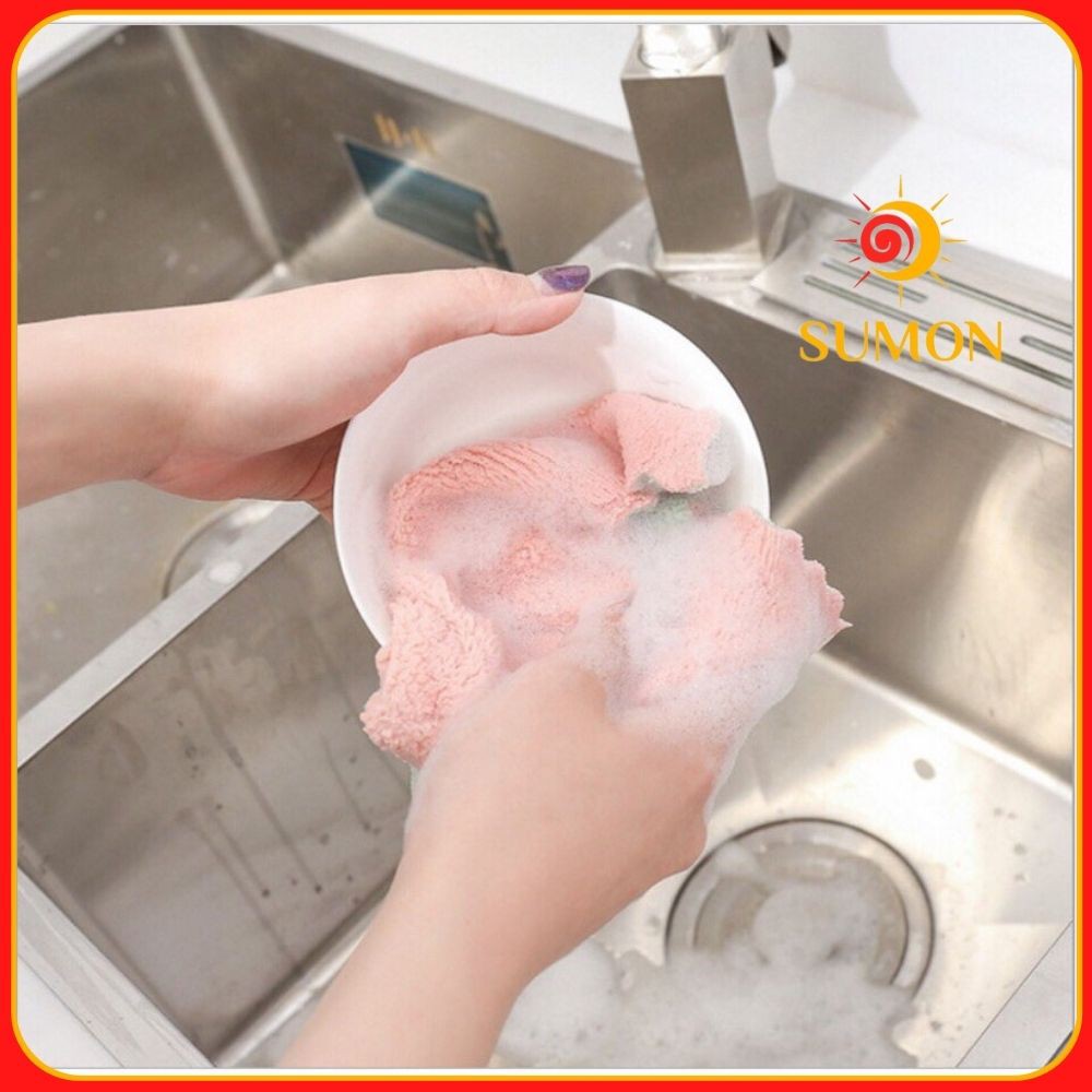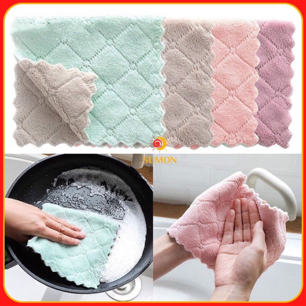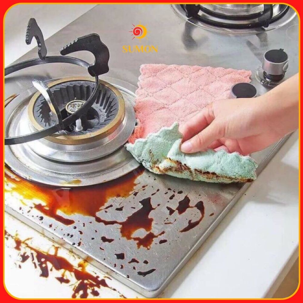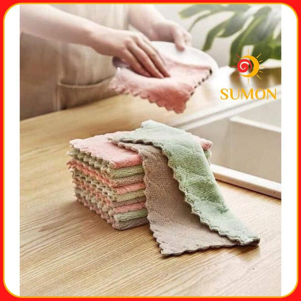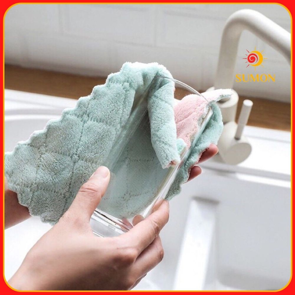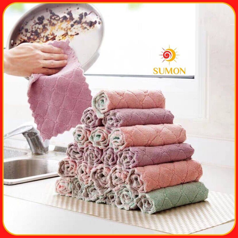 Khăn lau đa năng bếp SUMON chuyên dùng lau bát đĩa, cốc chén thấm nước chống dính dầu mỡ hai mặt MS_51