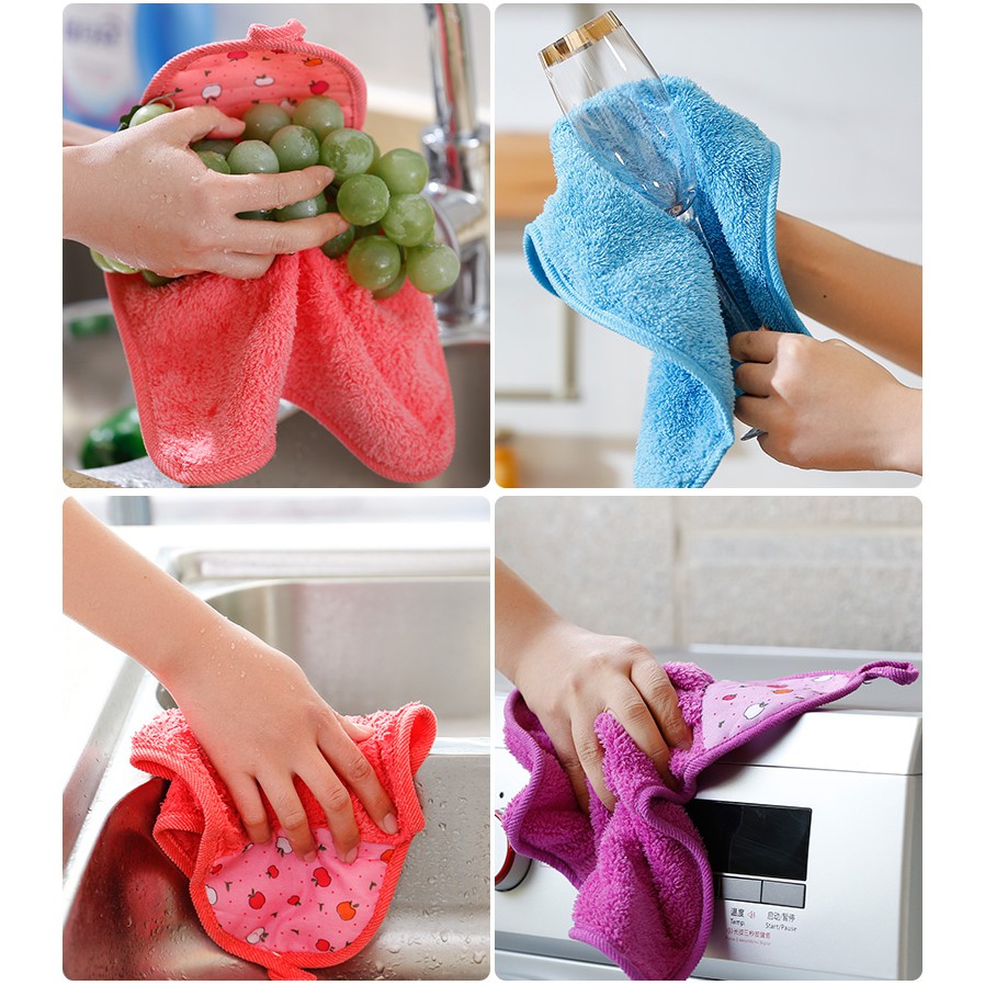 Khăn Lau Tay Lông Cừu KIBA, Chất Siêu Mềm, Siêu Thấm, Có Móc Treo Tiện Lợi, Nhiều Màu Sắc Xinh Xắn