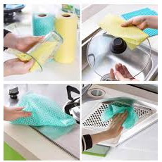 - Giữa mỗi miếng vải có đường đục lỗ phân cách, bạn có thể dễ dàng xé ra và sử dụng để làm sạch các vật dụng trong gia đình, nhà hàng, khách sạn như: bát, bộ đồ ăn, tủ bếp,...