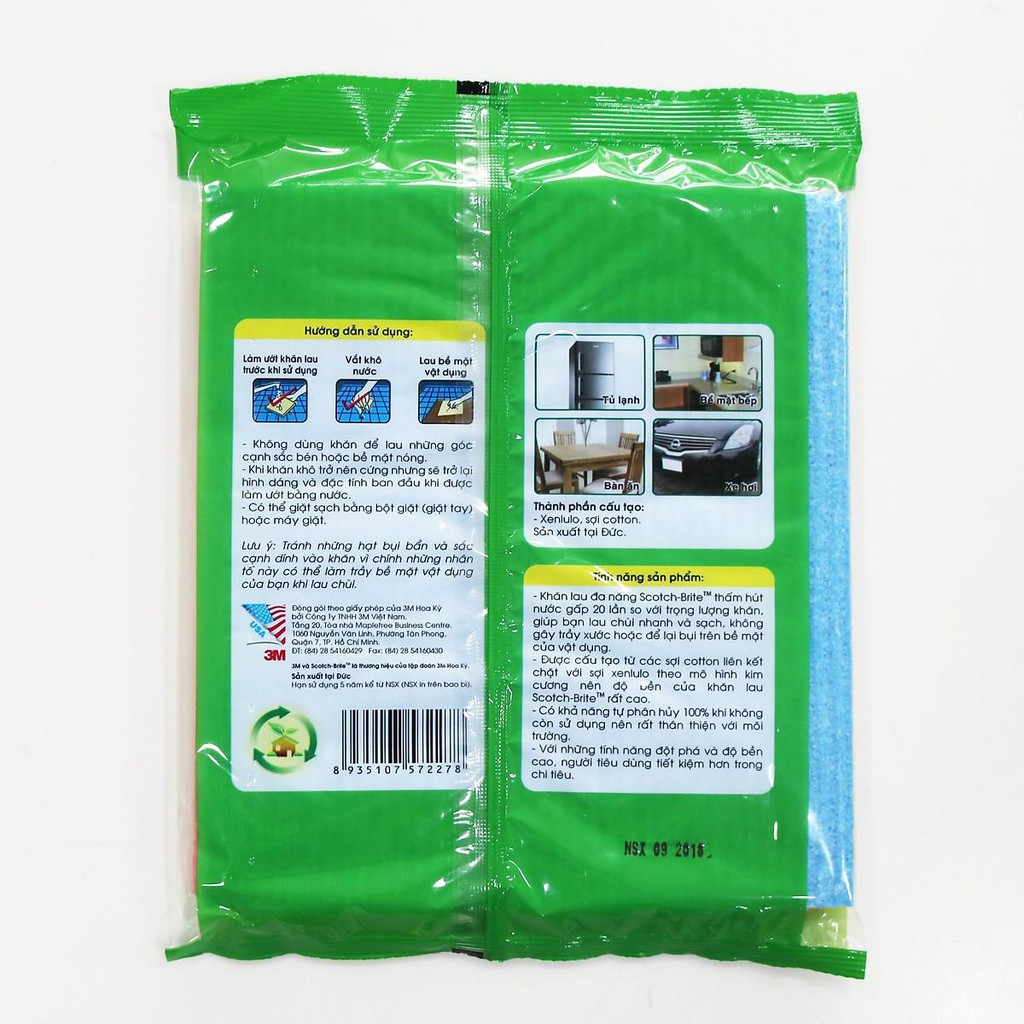 Thông tin sản phẩmTên sản phẩm: Gói 3 cái khăn lau đa năng không trầy xước Scotch-Brite 3M