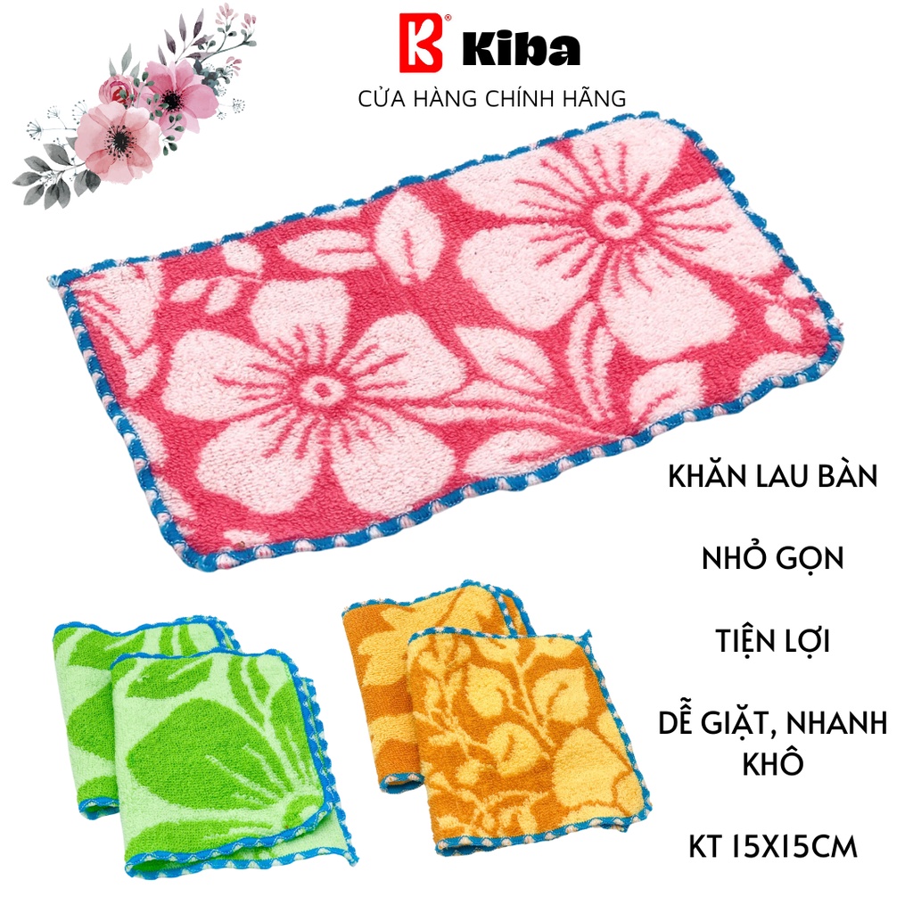 Giới thiệu Khăn Lau Bàn, Lau Bếp KIBA Loại Nhỏ, Kích Thước 15x20cm, Chất Liệu Cotton, Nhỏ, Gọn, Dễ Giặt, Nhanh Khô