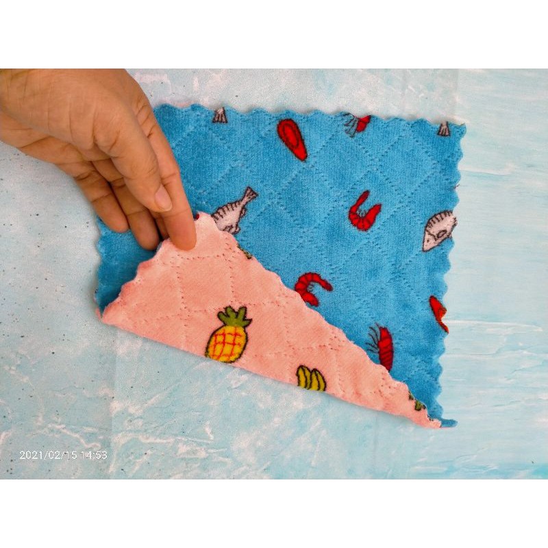 Số lượng 1 cáiKhăn Lau 2 Mặt Họa Tiết Hoa Quả 25x25cm Siêu Thấm Hút Nước
