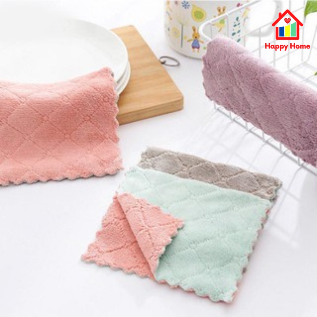 Khăn lau đa năng, lau bếp, bát đĩa, bàn ghế 2 mặt siêu mềm mịn, thấm hút tốt, kháng khuẩn Happy Home