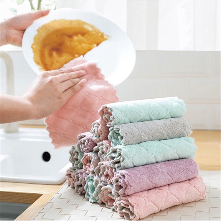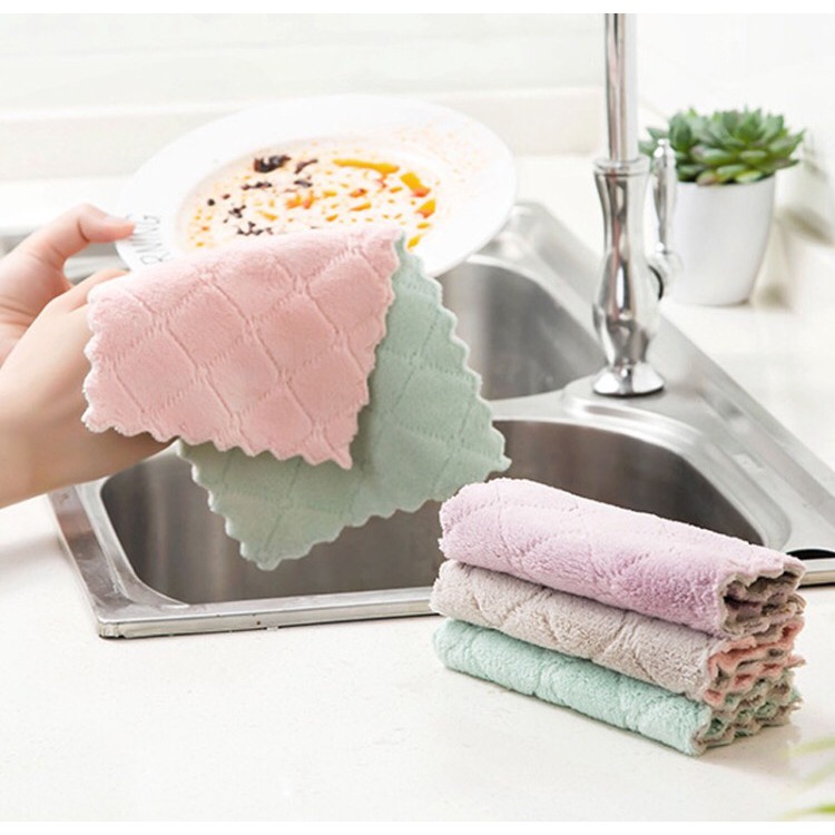 Nhà cửa & Đời sống > Dụng cụ chăm sóc nhà cửa > Khăn vệ sinh || Khăn lau đa năng (lau bếp, bát đĩa, bàn ghế...) 2 mặt siêu mềm mịn, thấm hút tốt, kháng khuẩn 16x25cmCòn hàng