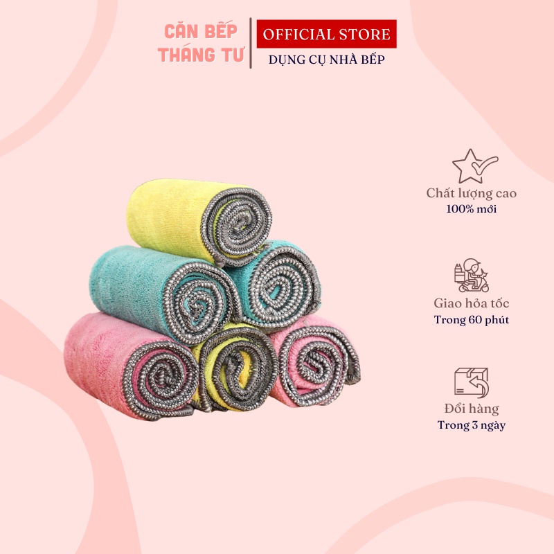 Khăn lau đa năng microfiber lau bếp bát dĩa thấm hút tốt loại to 25x25 KDN